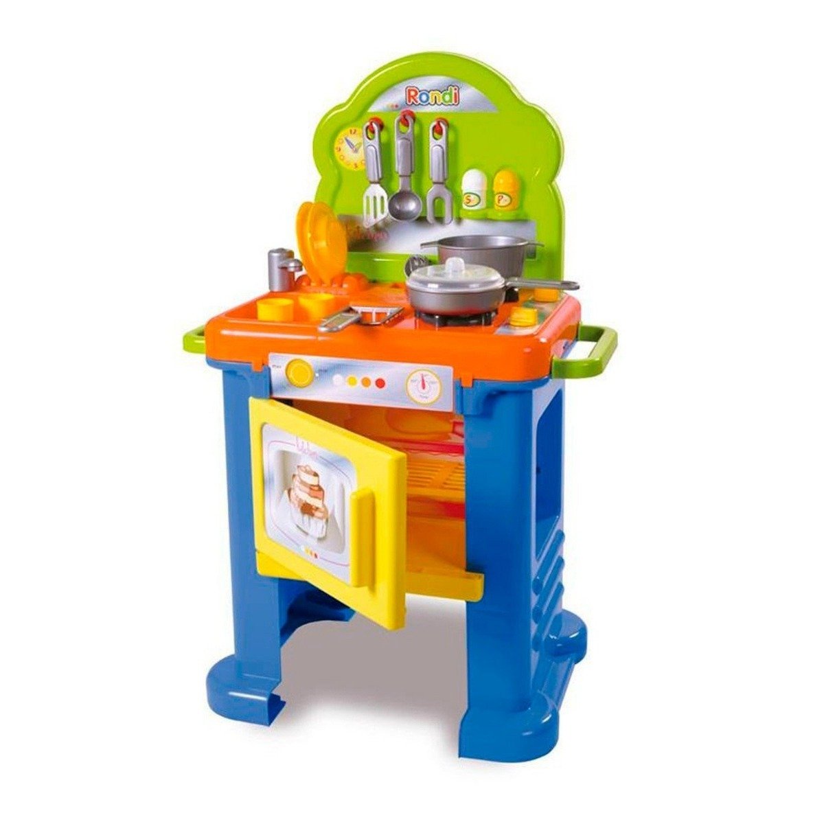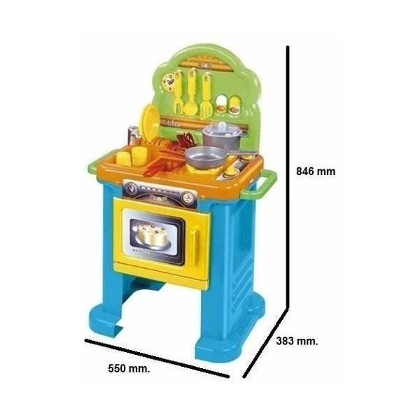 | Accesorios incluidos | Sarten Olla con tapa 2 vasos 9 cubiertos 2 platos Colador de papas 1 salero 1 pimentero Medidas de la cocina:84.5 x 55 x 38.3 cm Medidas de caja:65 x 40 x 28 cm para + de 3 años |