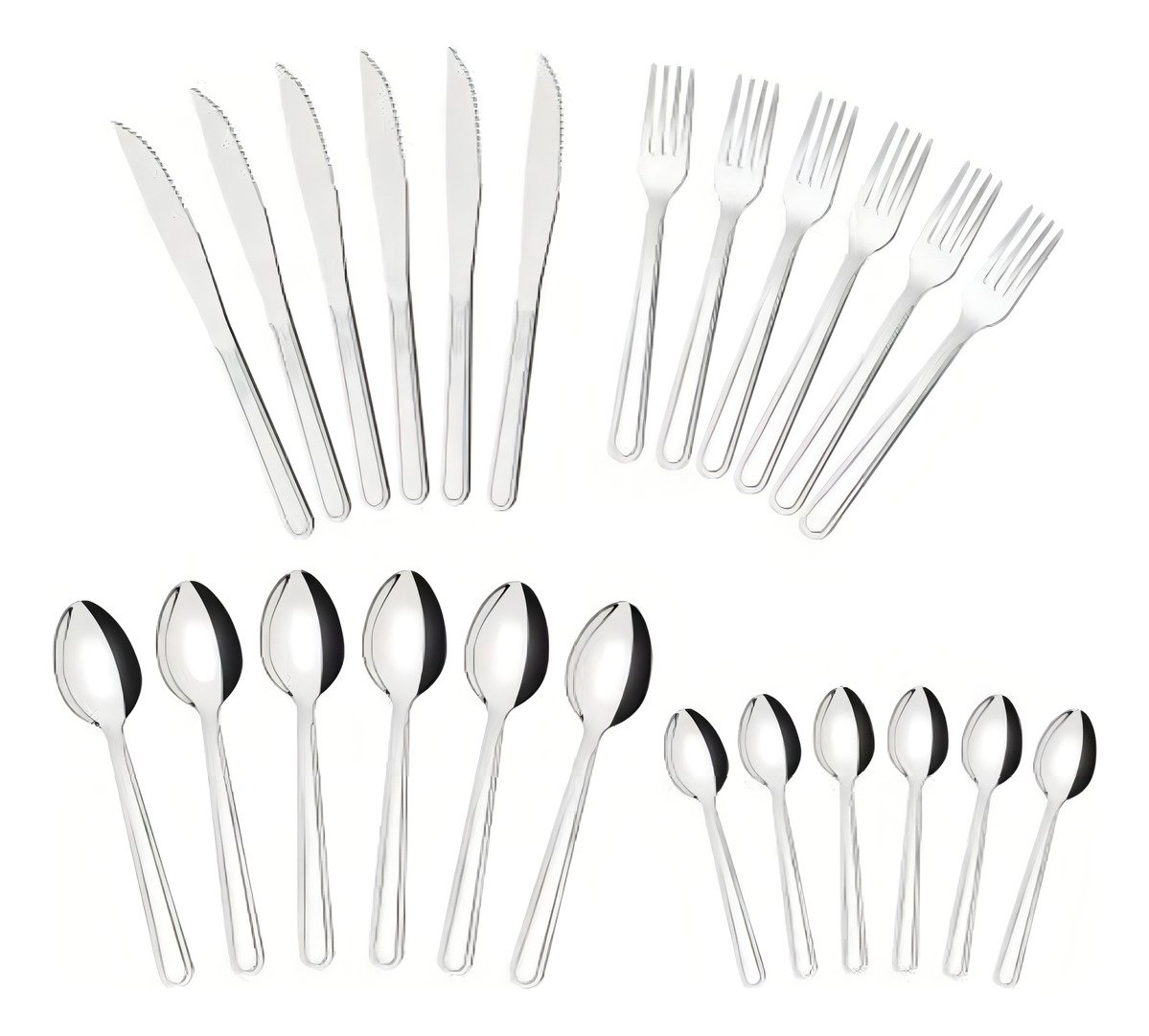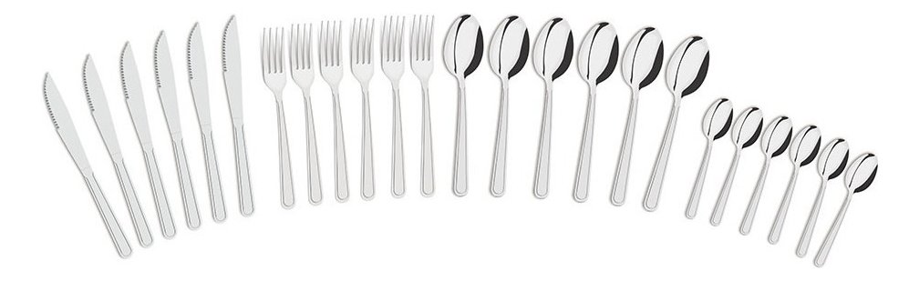 | Cubiertos incluidos | 6 Cuchara de Mesa Búzios, 6 Cuchara para Té Búzios, 6 Cuchillo para Asado 4" Búzios, 6 Tenedor de Mesa Búzios |