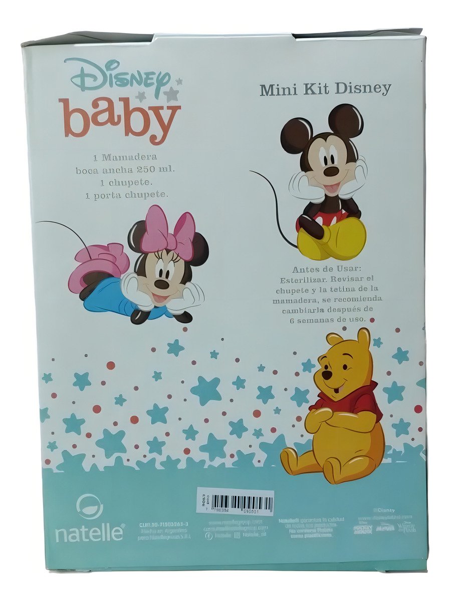Mini Kit Disney Mickey Mamadera Chupete Nattelle Azul Acero Mickey