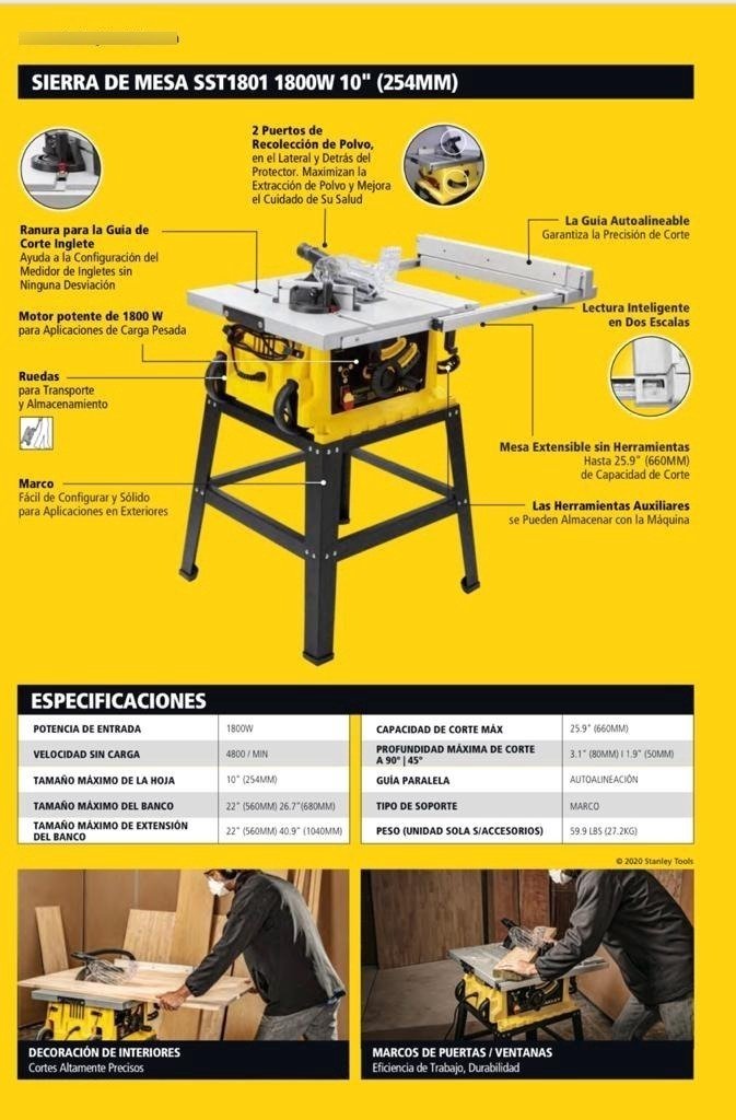 | Accesorios incluidos | 1 disco 10, 1 guía de corte autoalineación., 2 puertos recolección polvo, escala regular |